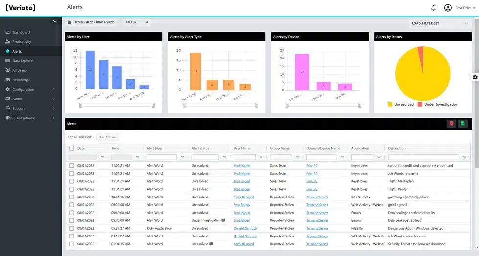 Veriato’s AI-powered algorithm analyzes user behavior patterns and automatically alerts you to any abnormal or suspicious activity.